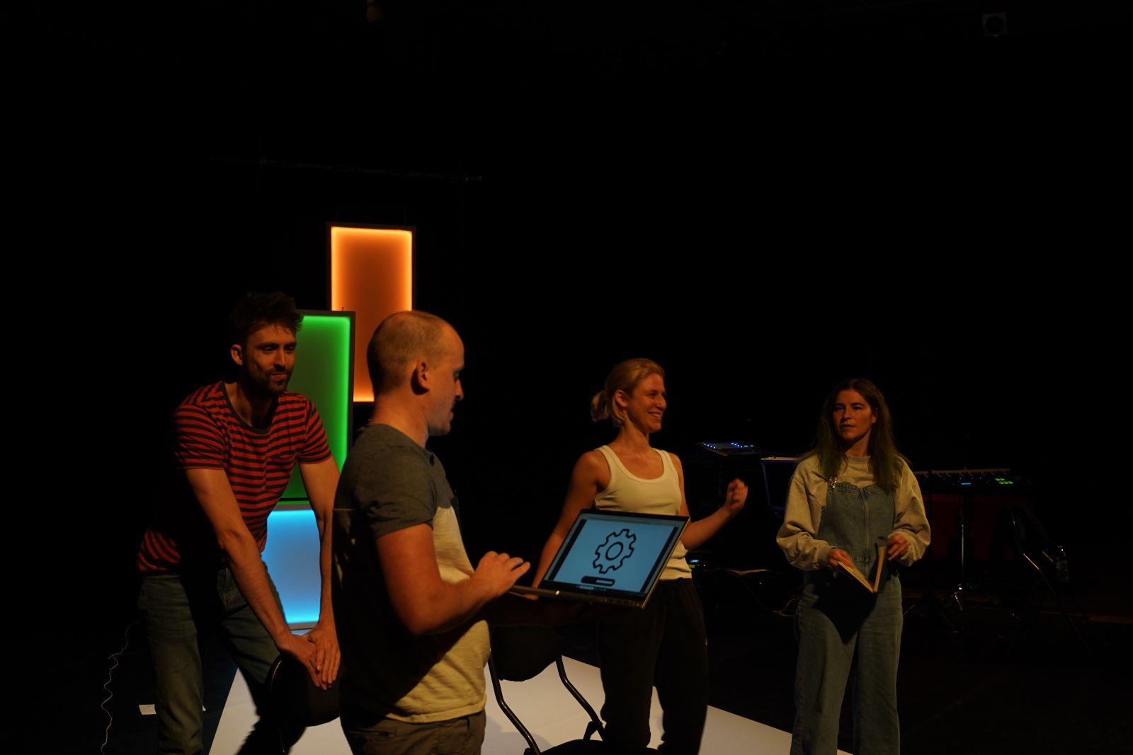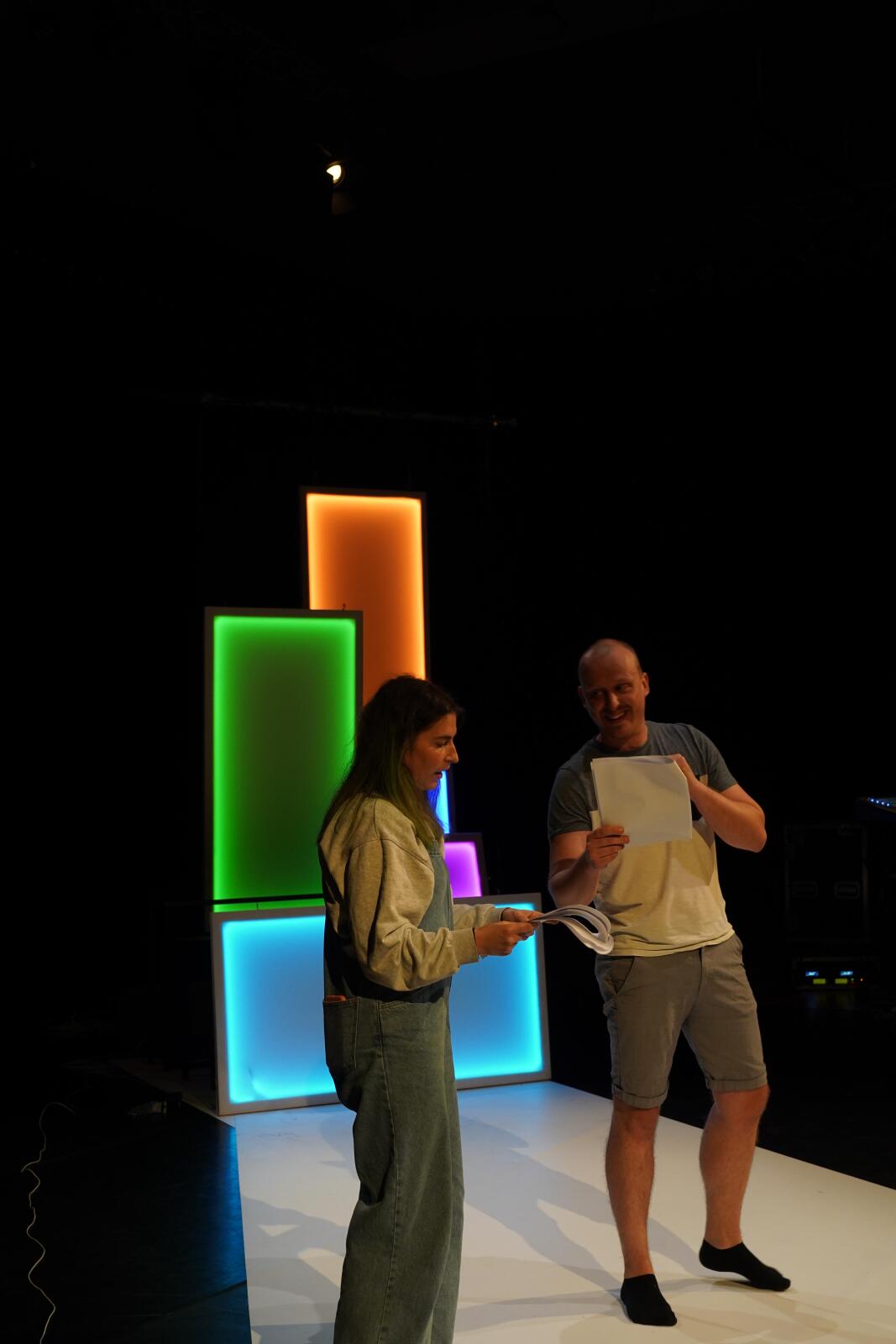 Tine Roggeman: “Het was een enorme geruststelling om te merken dat ze mee waren, zelfs zonder kostuums en zonder lichtplan. Voor de kinderen was het, denk ik, ook interessant om de andere kant van een voorstelling te zien: hoe zo'n creatief proces tot stand komt, het work-in-progress-gedeelte.”