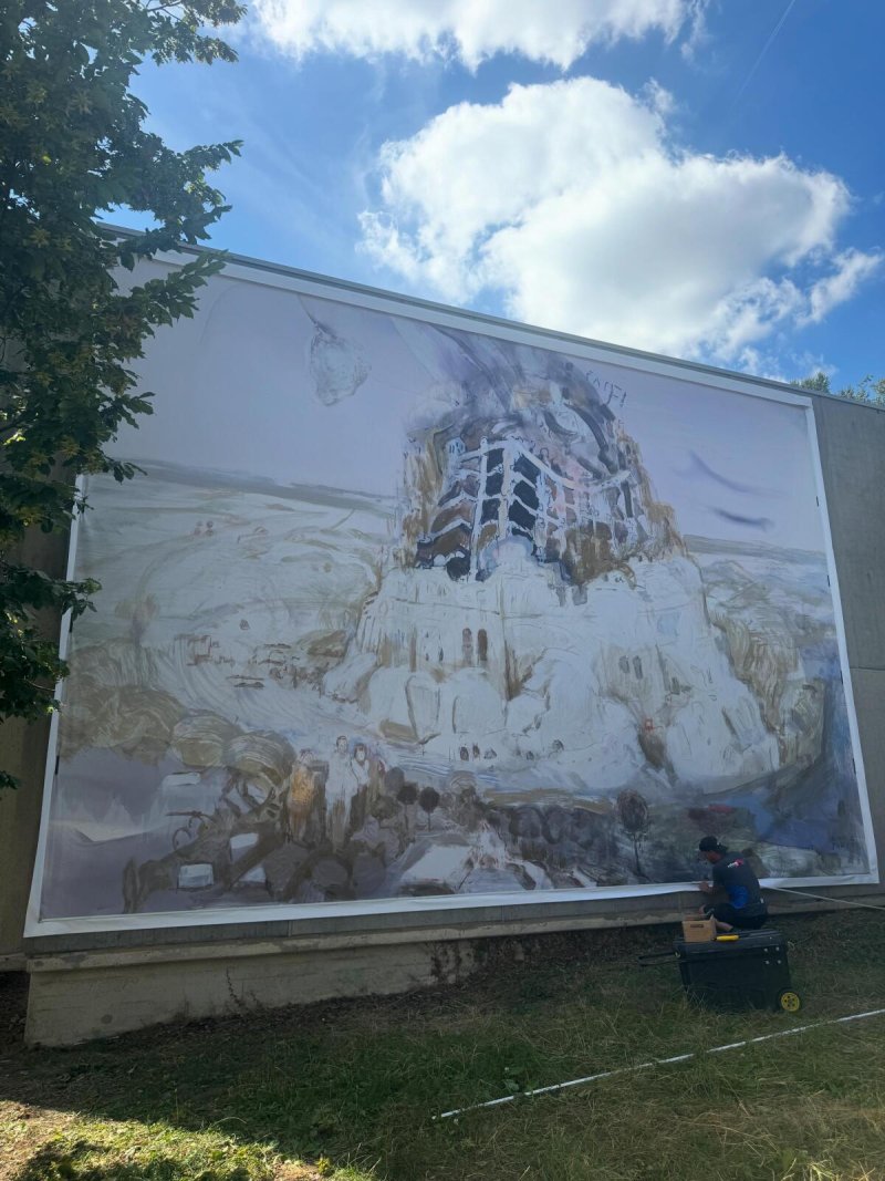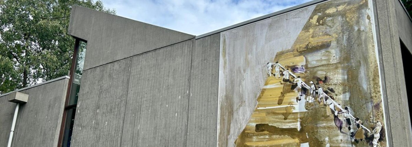 In 2024 en 2025 resideerde de Beerselse kunstenares Nora Theys in Destelheide, het Centrum voor Jeugd, Kunst en Creatie. Nora Theys (°1958) groeide op in Alsemberg, in een familie van beeldende kunstenaars. Ze studeerde aan Sint-Lukas in Brussel en gaf er jarenlang les. Haar artistieke traject begon met muurschilderingen en illustraties en evolueerde snel naar een experimentele en maatschappelijk geladen beeldtaal. Vandaag omvat haar werk zowel figuratieve als abstracte elementen, vaak met een poëtische, gelaagde en sociaal bewogen ondertoon. Vanuit haar atelier in Destelheide werkte ze aan een artistiek onderzoek rond mensenrechten — een thema dat ook voor ons, als jeugdcentrum met het Quality Label van de Raad van Europa, essentieel is. De residentie mondde in de zomer van 2025 uit in de succesvolle expo ‘Witte Stormen’. Die expo kreeg een blijvend karakter door de drie werken van Nora Theys die in Destelheide en Hanenbos op de gevels prijken. In Destelheide kan je twee werken bewonderen: eentje aan het Kleigebouw en eentje aan slaapblok F.