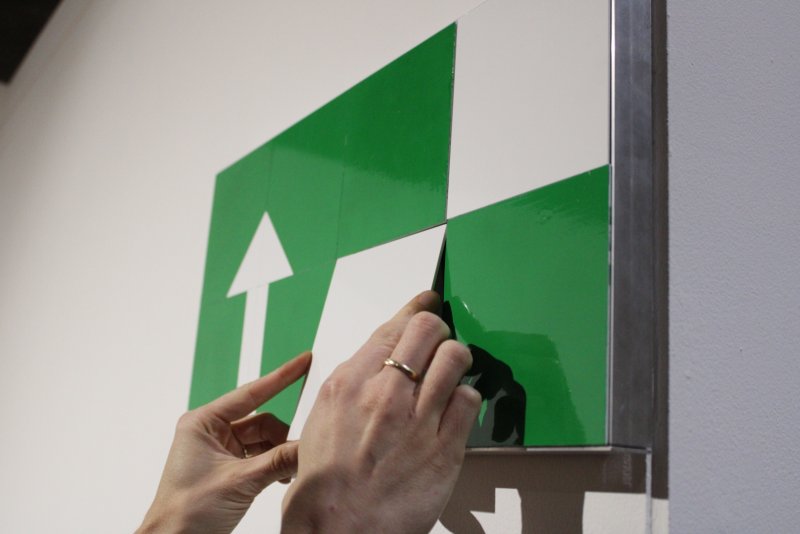 'Way Out' is geïnspireerd op een exitbord. Gert De Clerq zag hier het potentieel van een abstract kunstwerk in, waarbij het bord in verschillende vlakken verdeeld kan worden zodat er twee witte vlakken, twee volle groene vlakken en twee gemengde uit konden gehaald worden. Het is een interactief werk, waarbij je zelf kan puzzelen tot, volgens AI, 645 120 verschillende composities. Het heet ook 'Way Out' omdat de ‘uitweg’ eindeloos en doelloos is. Je kan blijven vormen maken en er is niet één juist resultaat of antwoord.