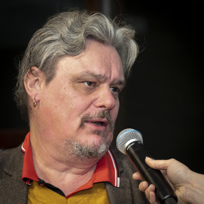 Jan Van Imschoot: “Een zeer goede zaak. Het typische ‘museumpubliek’ loopt heel de tijd met zo’n audiogids tegen het oor gedrukt waarin wordt verteld wat je van een werk zou moeten denken of hoe je het zou moeten beleven. Echt onnozel vind ik dat. Kunst is kunst. Kunst wordt gemaakt door degene die het bekijkt. Iedereen mag er zijn eigen verbeelding aan toevoegen, zijn eigen verhaal. Het is zoals je een film bekijkt of muziek beluistert, iedereen ervaart dat op zijn eigen manier. Je hebt daar geen tekst en uitleg bij nodig. Naar kunst moet je onbevangen kunnen kijken. Fijn dat hier zoveel jonge mensen op die manier de expo zullen kunnen zien. Liever zij dan een bende kunsthistorici. Daar heb ik meestal al na twee minuten ruzie mee (lacht). “